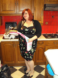 The polka dot dress is a fab party dress with a full on swing skirt. The green dress is bloody awesome - It's a Frida Kahlo print, the same as Get Cutie use to do but it cost me about £35 rather than £100! I probably could have got away with a 22 in this one because it's quite generous on the bust. The fabric is amazing - thick and firm, but also soft and stretchy. the Paris print dress wasn't so good, because oddly the stretch goes from top to bottom rather than side to side (surely a mistake?!), so I couldn't get it over my boobs. I ended up cutting the lining out and recreating the body of the dress. Super scruffy work, but the dress is now wearable (albeit SUPER lowcut!), and the pattern was to good not to keep! The pin-up cowgirls dress was the one that really stopped my heart. This is the (Alexander Henry) fabric that I nearly spent loads of money on in order to try & make my own dress. Thank goodness I didn't because this dress looks amazing on - I need a belt to position the waist properly as the skirt is so full, but for £35 I was one happy bunny when this arrived.